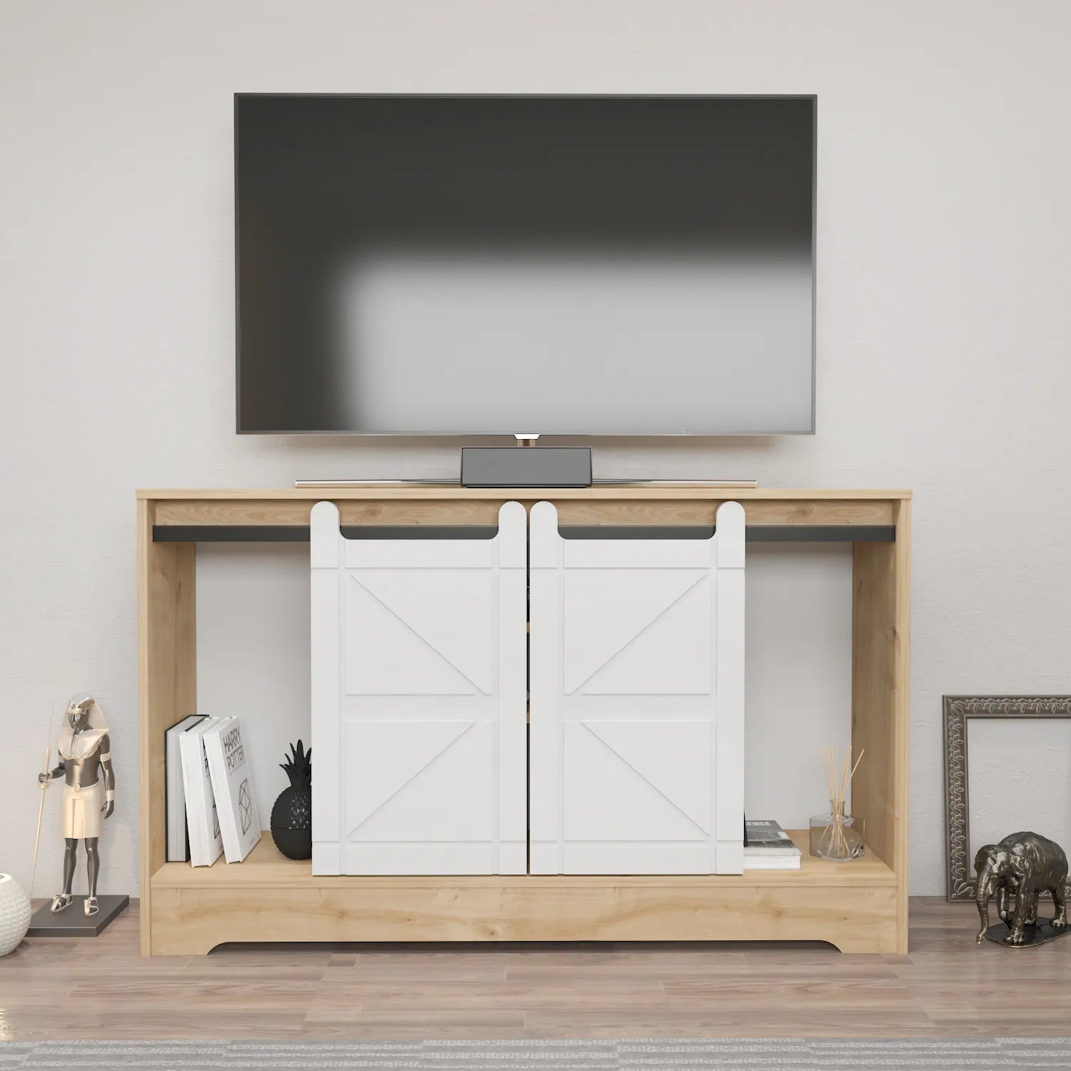 Ahris 55 inch Wide TV Stand Media Console with Sliding Barn Doors for TVs up to 65 inch
