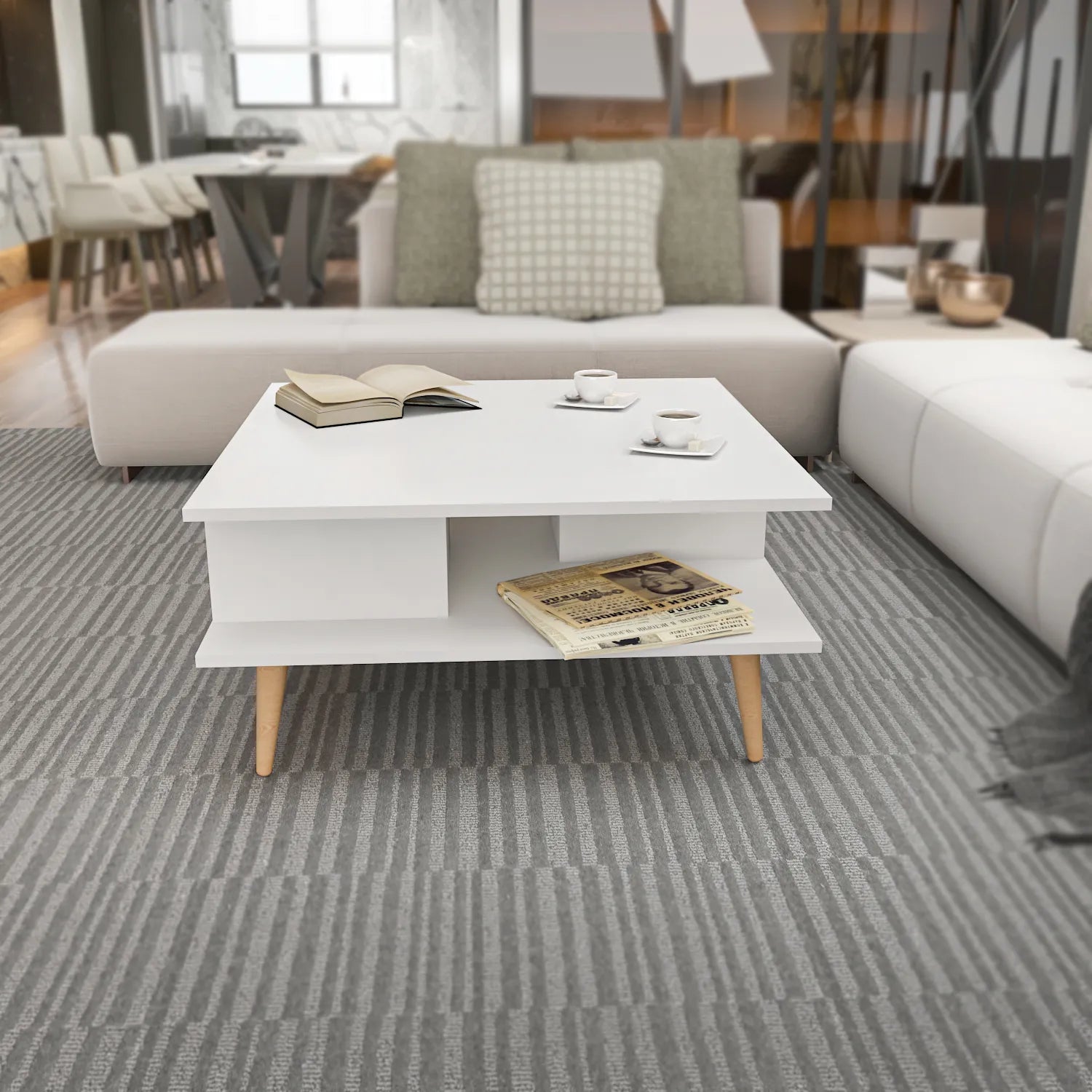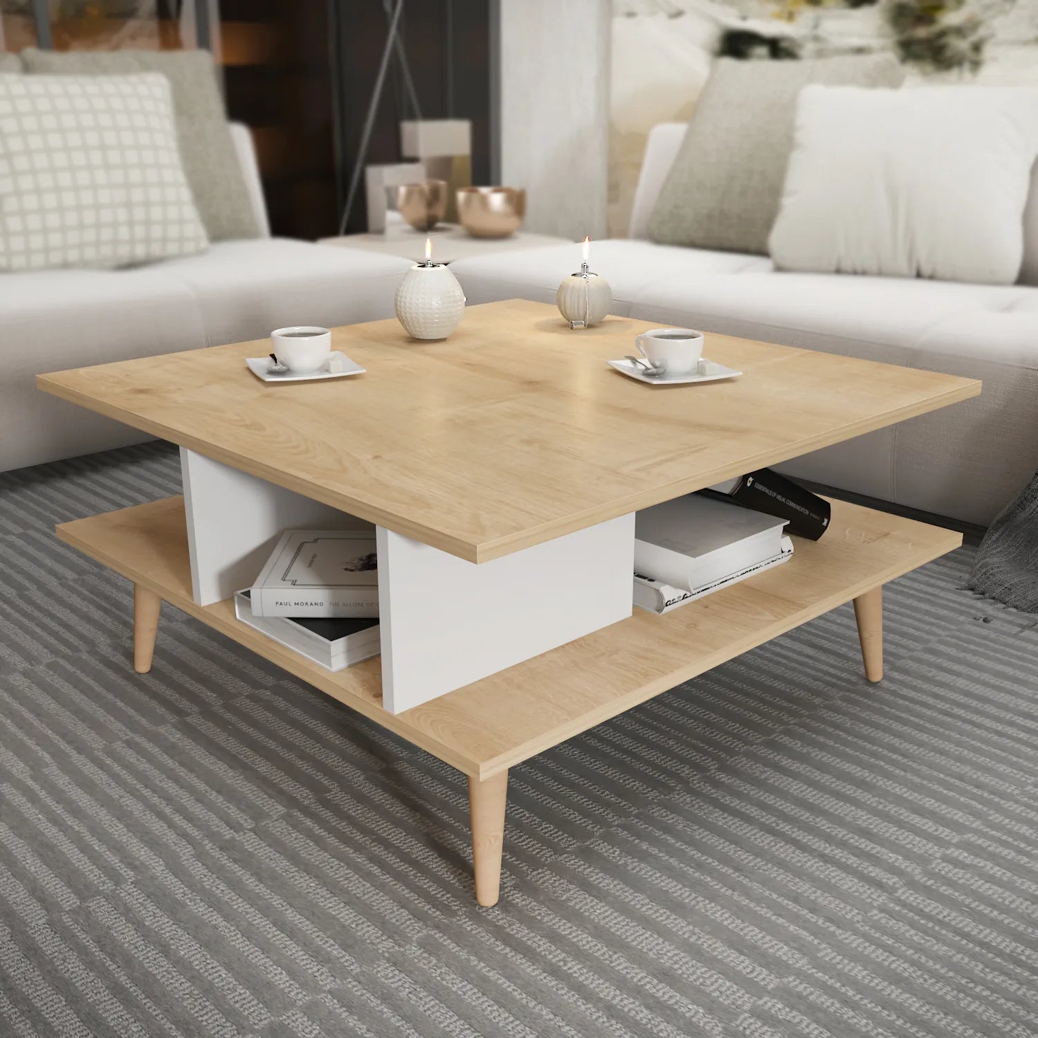 Akya 35 inch Wide Square Coffee Table with Open Shelf Storage
