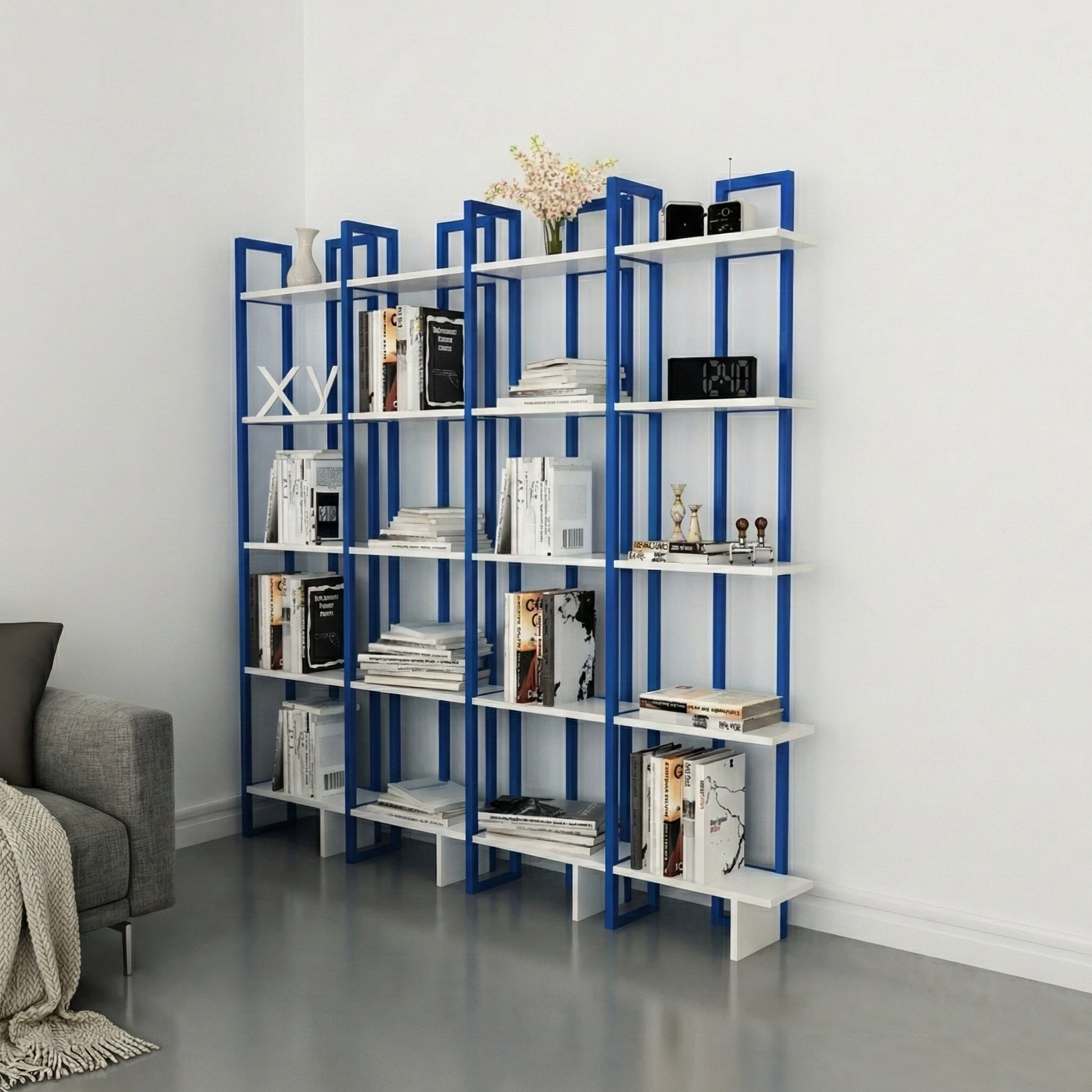 Crafted with precision, the shelves of the bookcase are made of 18mm thick manufactured wood. They are coated with melamine for durability and banded with first-class PVC edge banding tape, ensuring a high-quality finish. The frame is constructed of first-grade industrial metal, offering strength and stability.