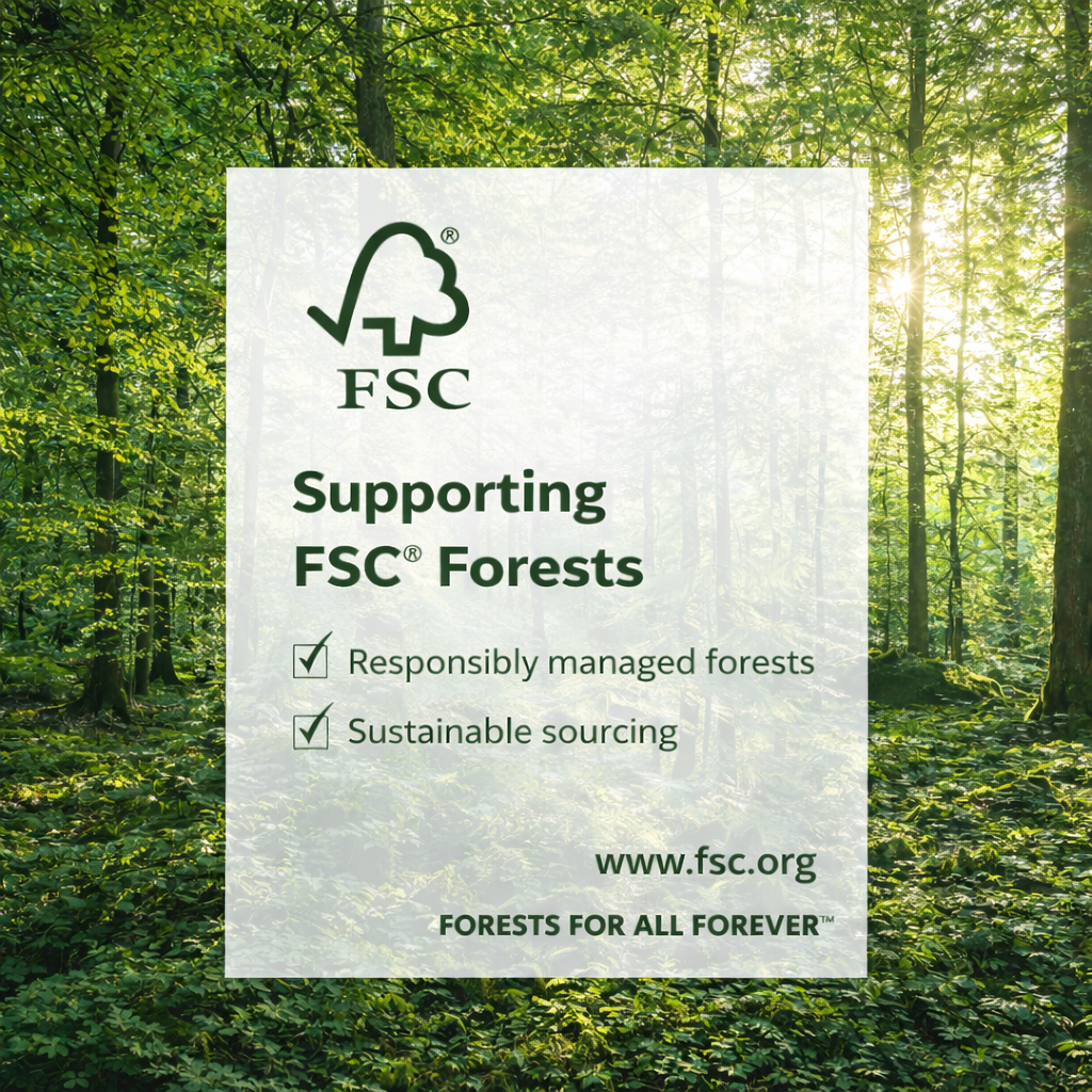 At Decorotika, we're committed to protecting our environment by sourcing wood from responsibly managed FSC certified forests, ensuring sustainability and responsible forestry practices.