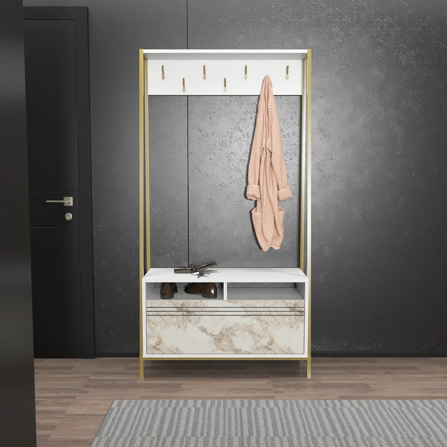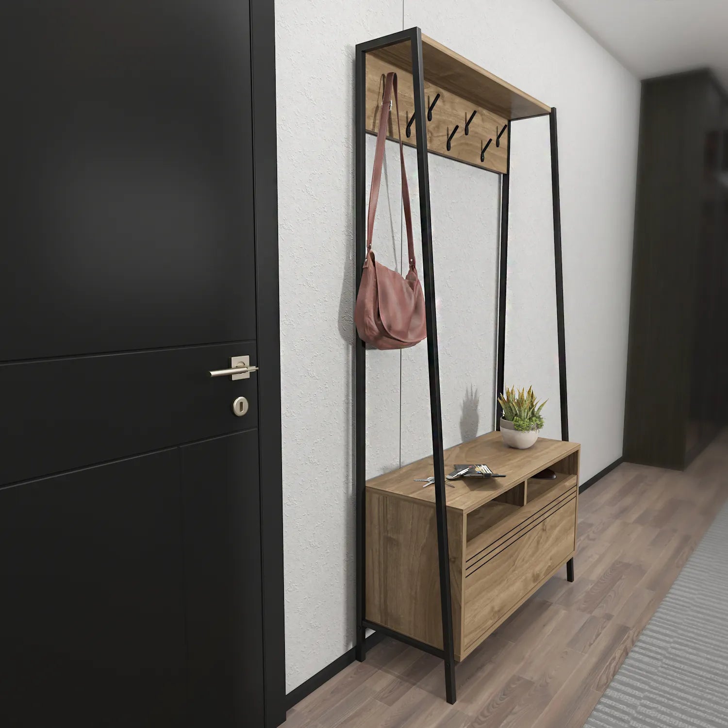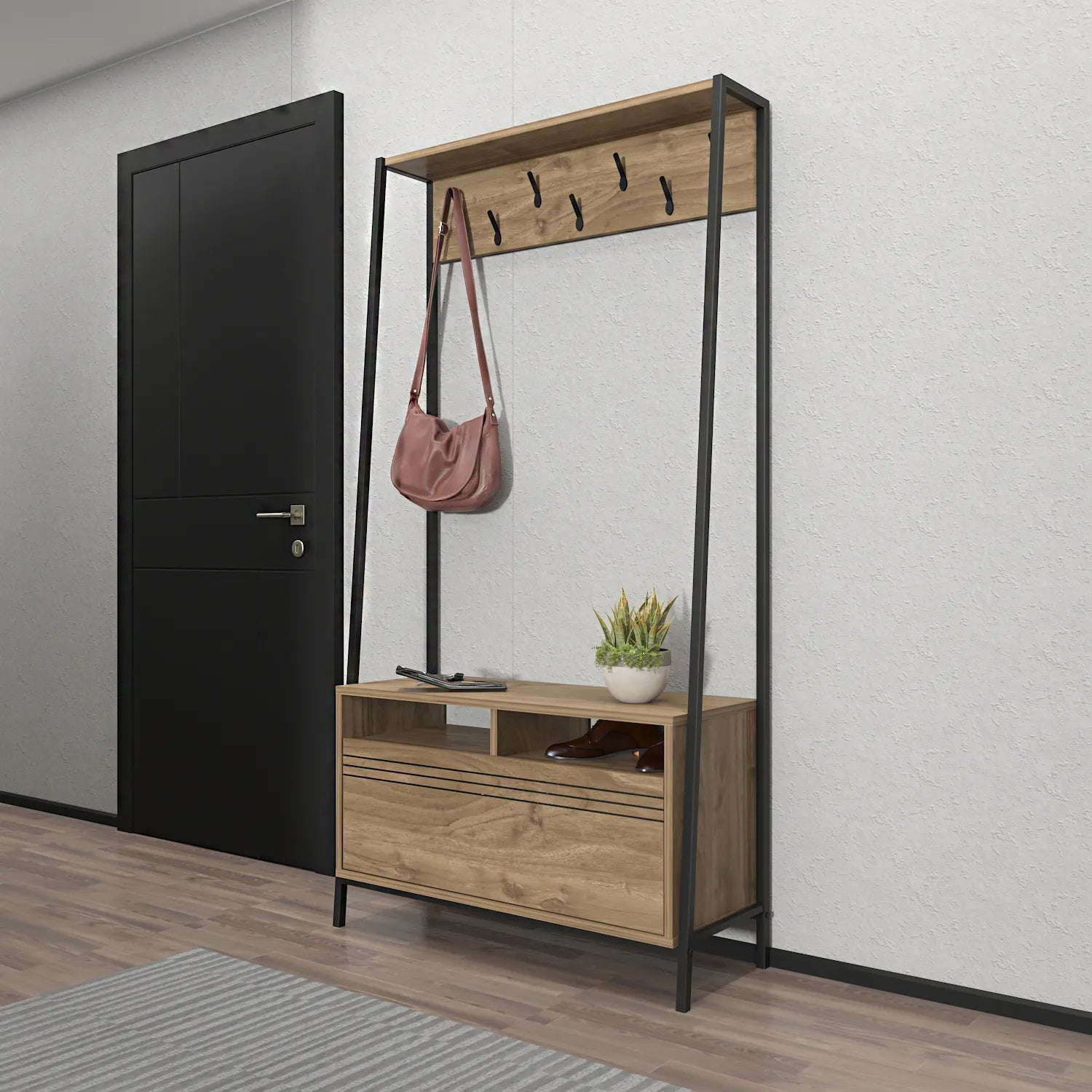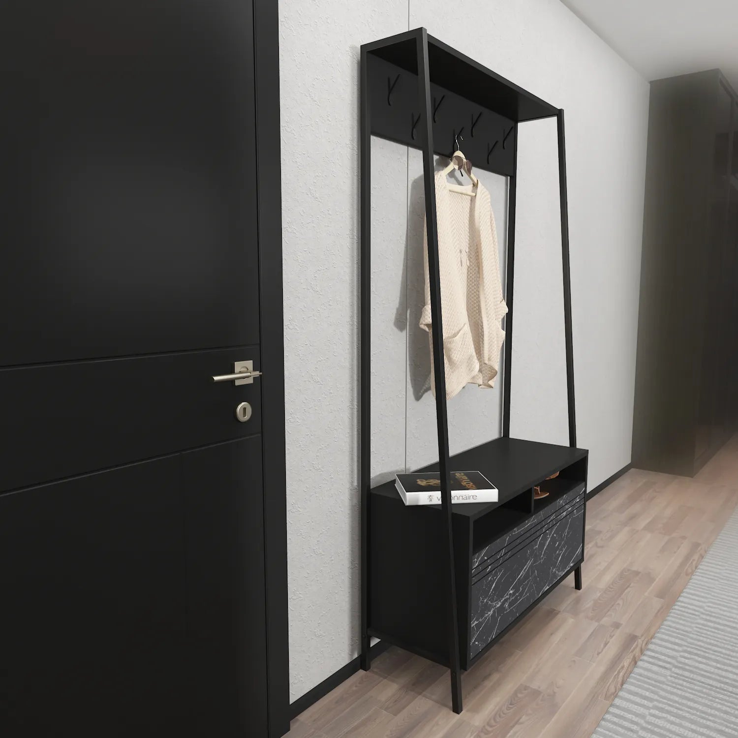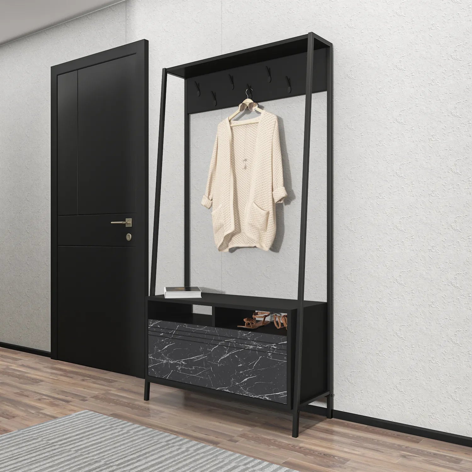 - 7 metal hooks for hanging coats and accessories