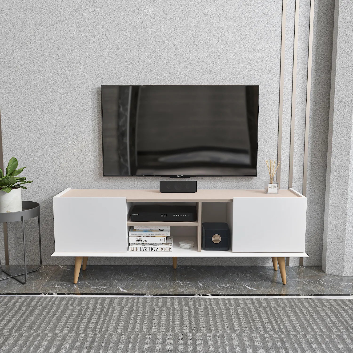 Crafted for durability and quality, the Ekvador TV Stand features solid wood legs that not only enhance its sturdiness but also contribute to its overall appeal. Its chic and comfortable design allows for easy decoration, helping you achieve a tidy and organized look in your room.
