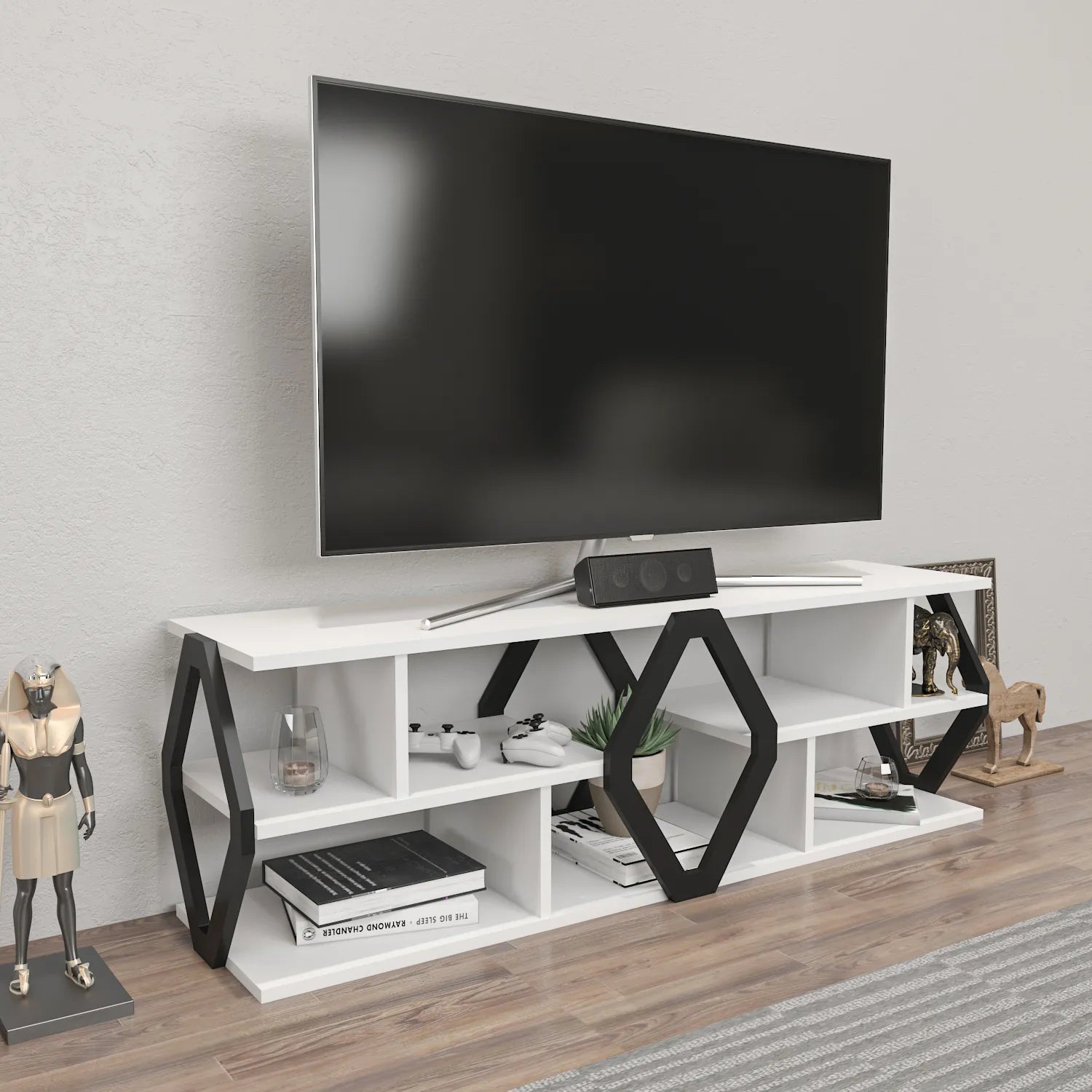 Erisa 55” wide TV stand and media console is designed for larger living rooms and can accommodate TVs up to 60”. The media stand provides a lot of space for storage with its open shelves. It is made of 18 mm thick standard quality melamine coated particle board and banded with PVC edge banding tape. It is manufactured using eco-friendly and health-friendly TSE certified materials. The product will be delivered to the customer in the original package as disassembled. It is designed to be assembled by the customer easily using a drill and screwdriver. Assembly instruction and installation hardware are included in the package. For fast and error-free installation, product parts are numbered with stickers in accordance with the assembly guide.