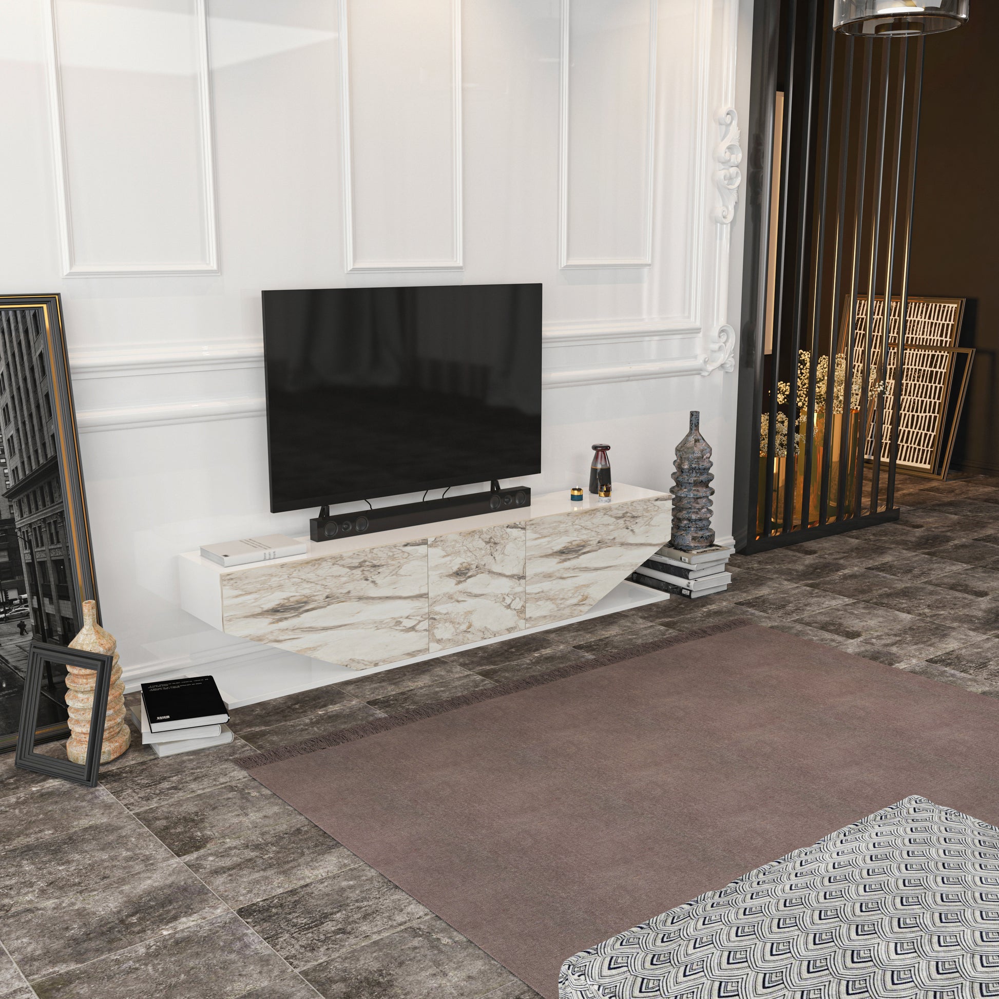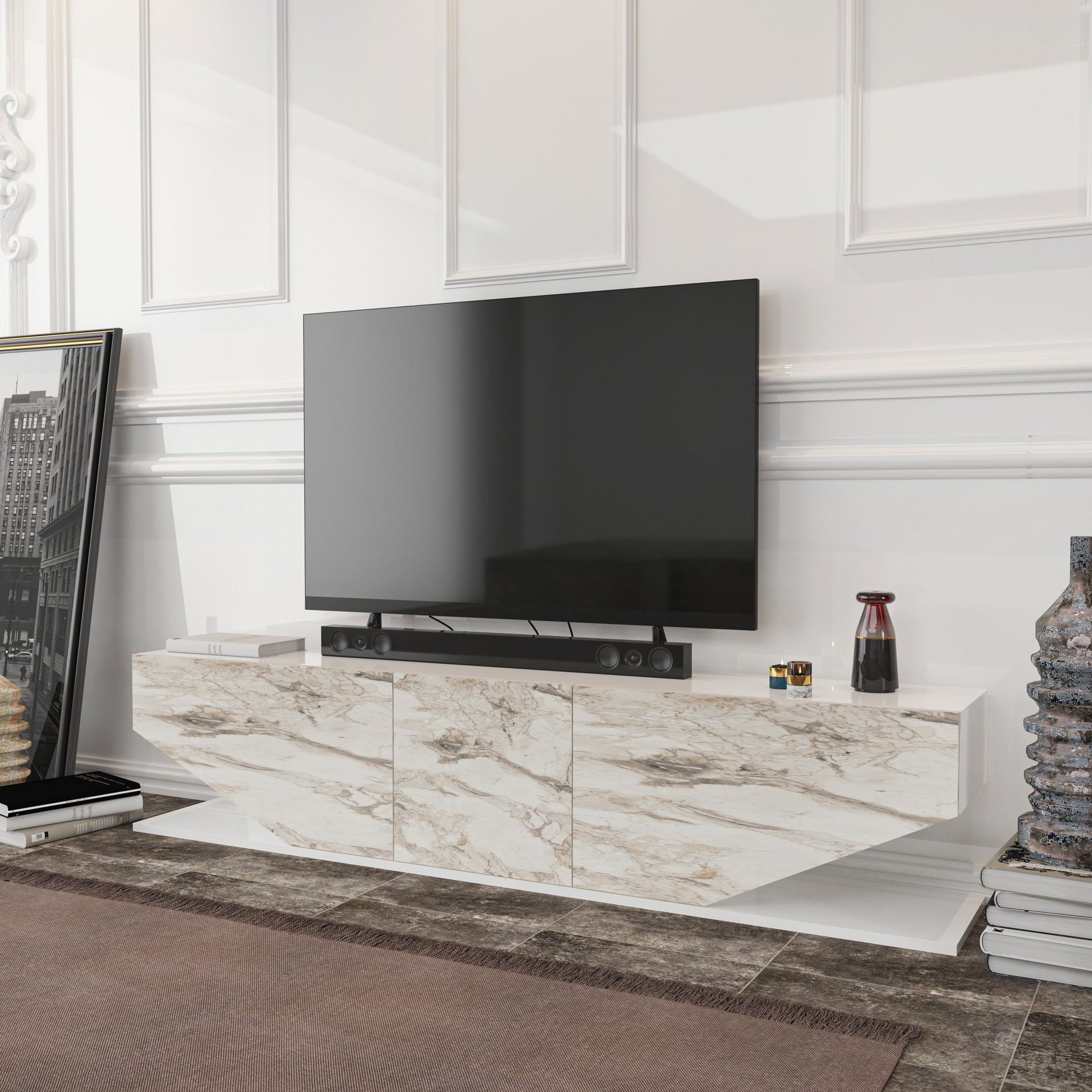 Elevate your living space with this sleek, modern floating TV stand, designed to bring architectural elegance and functional storage together. Featuring clean geometric lines and a crisp white finish, this TV unit creates a light, contemporary aesthetic while maximizing visual space.