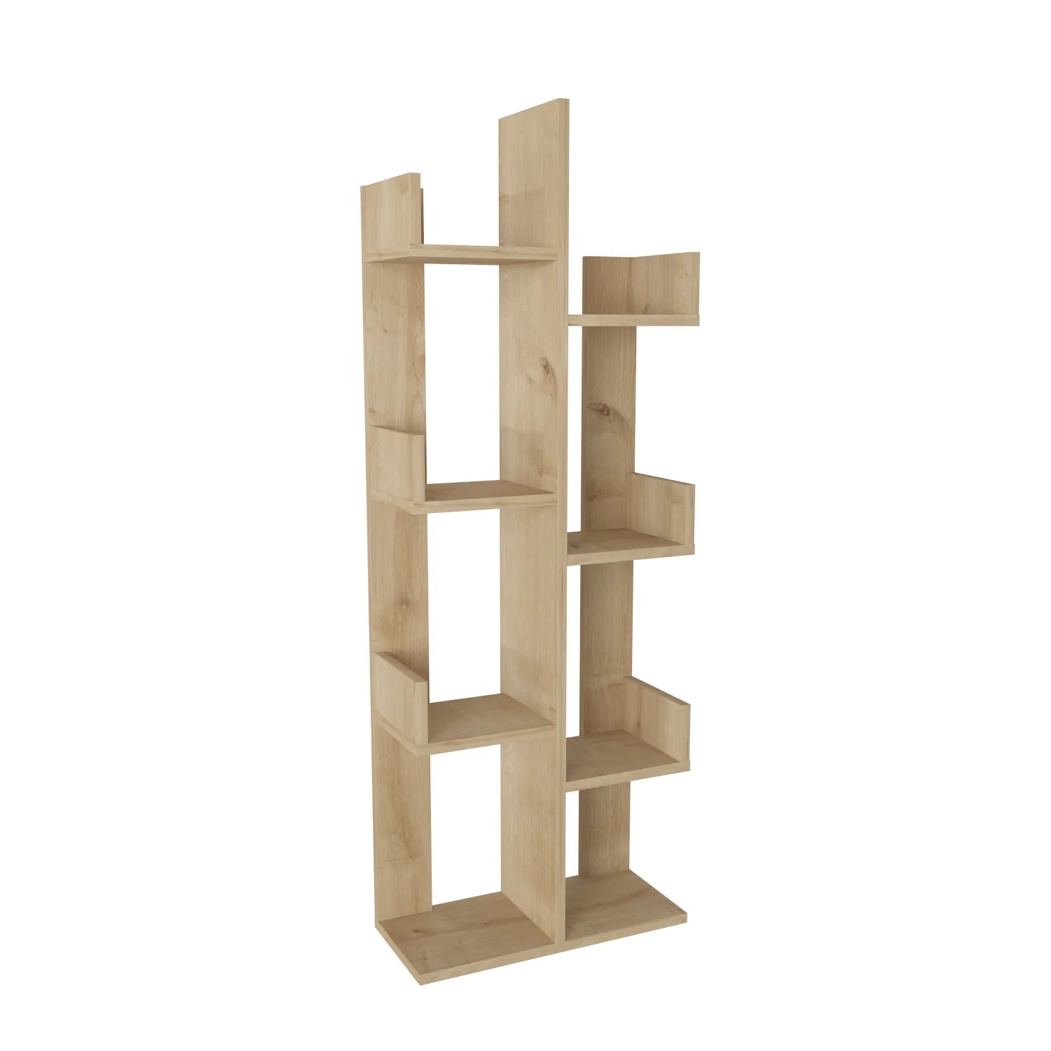 Luisa 54” tall modern bookshelf has a unique tree-shape design, adding an elegant look to your home/office decor. The bookcase with 4-tier half-backed 8 shelves provides enormous space for storing or displaying your books and decorative items. Side shelves prevent items from falling while back board and the base board ensure a better load-bearing and stability. It can also be used as a storage shelf; plant stand or flower rack. Contemporary design allows it to easily complement your home or office decor. The bookshelf is made of 18mm thick melamine veneered particle board and banded with PVC edge band. It is manufactured using health-friendly materials. The product will be delivered to the customer in the original package as disassembled. It is designed to be assembled by the customer using a power drill and screwdriver. Assembly instruction and installation hardware are included in the package. For fast and error-free installation, product parts are numbered with stickers following the assembly guide.