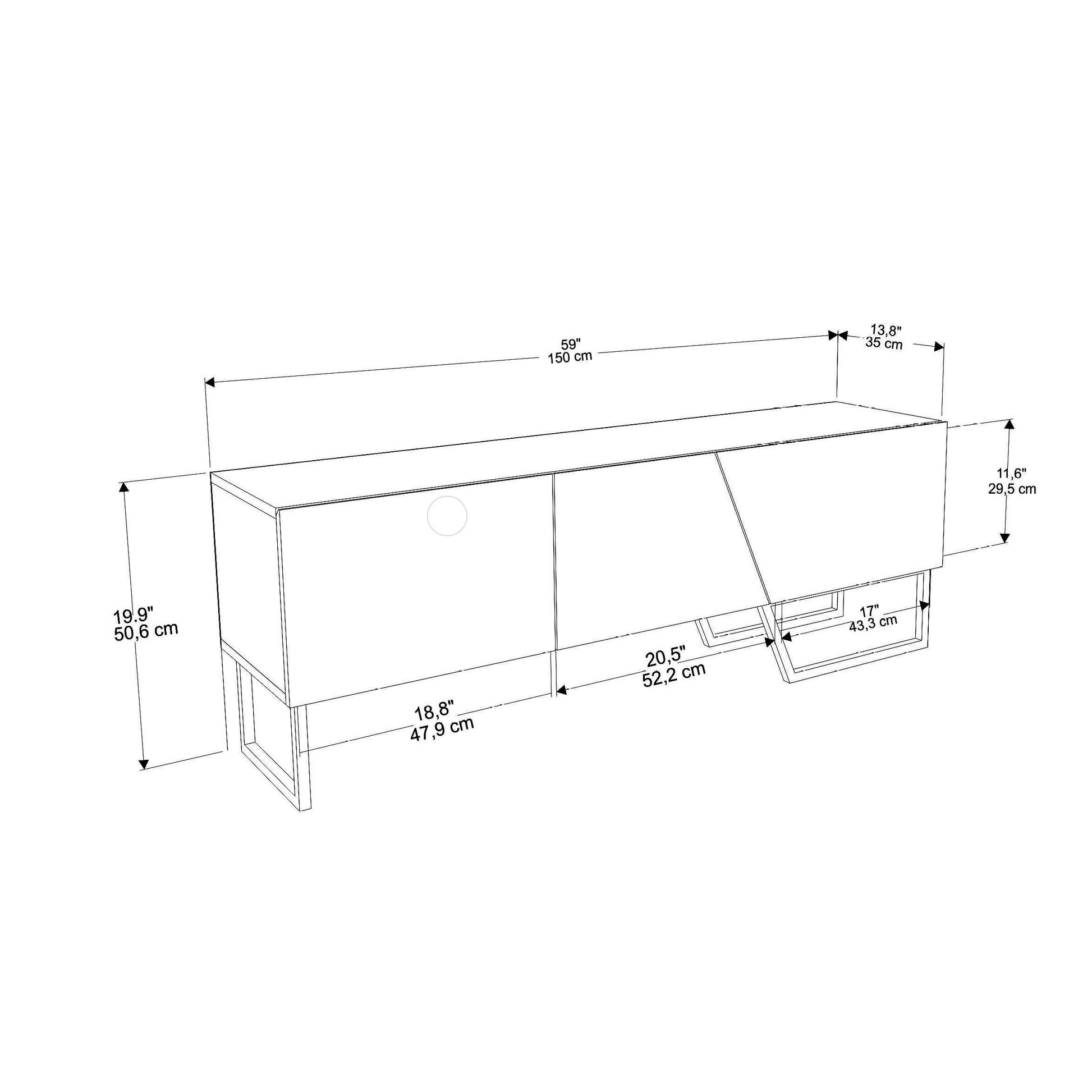| Dimensions | 59" W x 20" H x 13.8" D |