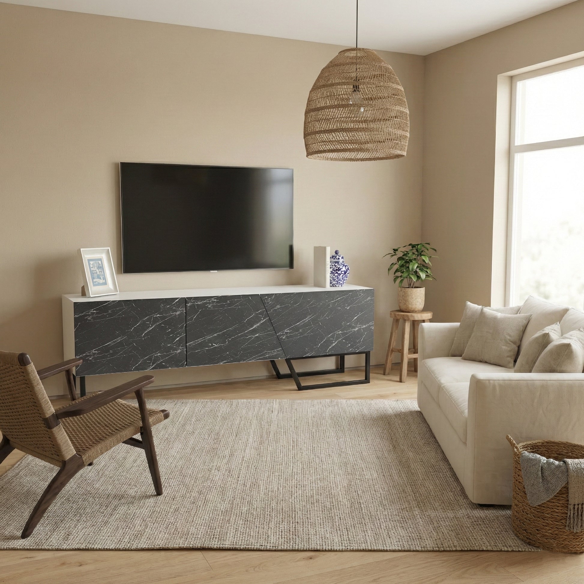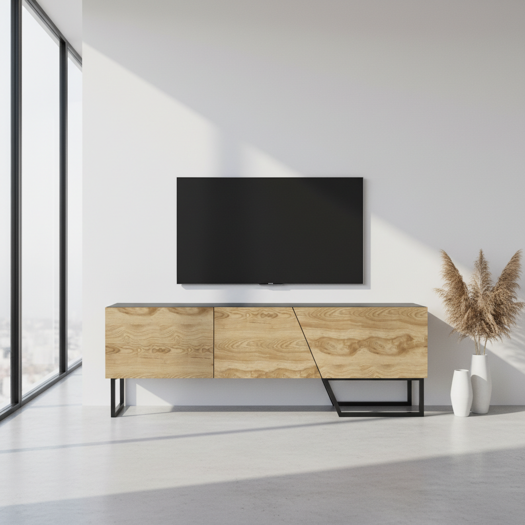 Built to last, the console is crafted from premium 18mm melamine-coated particle board, ensuring resistance to scratches and daily wear. The distinctive iron metal legs are coated in impact-resistant static paint, providing rock-solid stability for your television and décor.