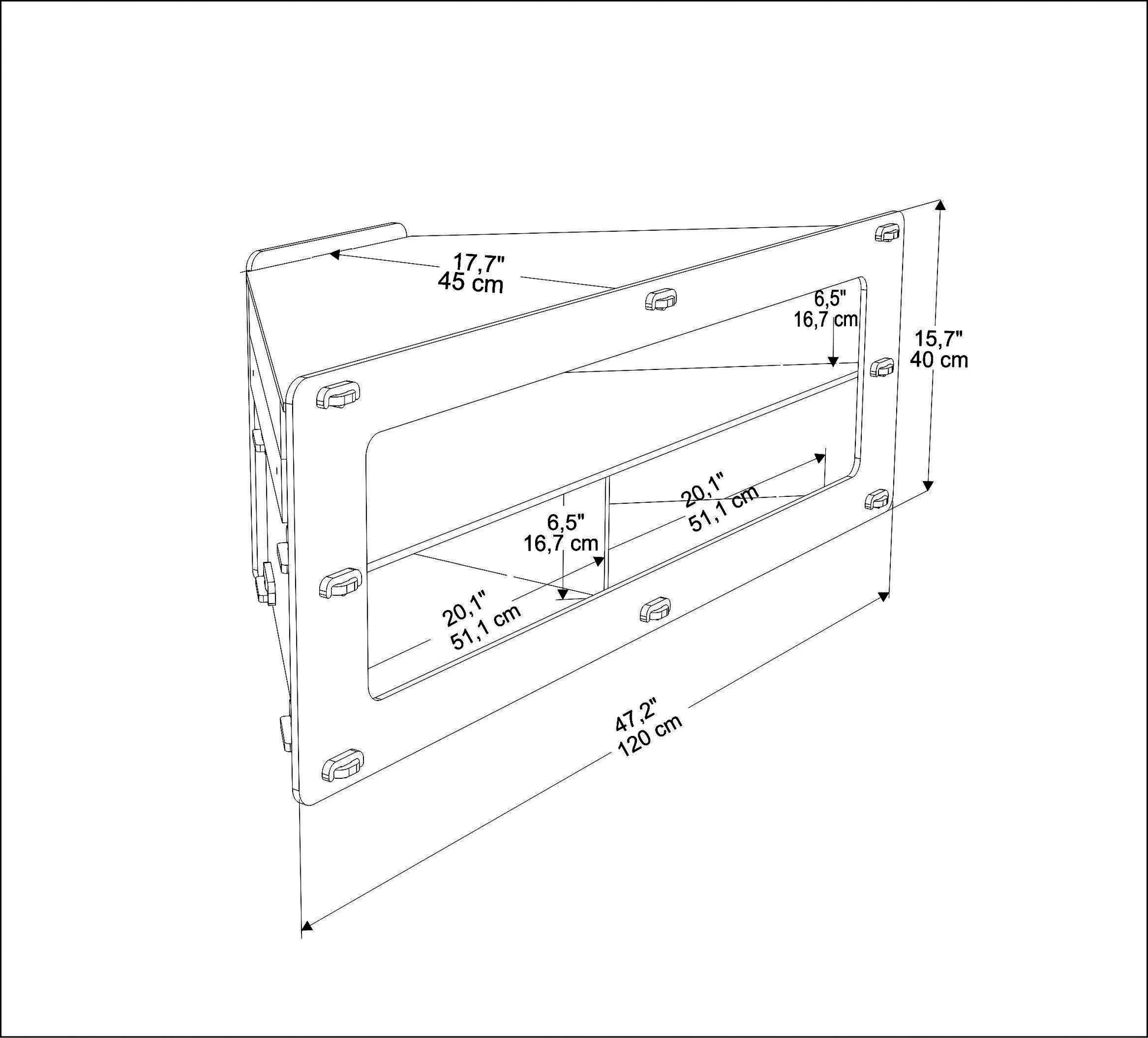 - Overall: 15.7” H x 47.2” W x 17.7” D