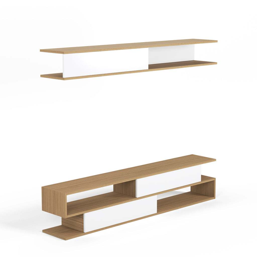 Crafted from durable 18mm manufactured wood, this unit offers a sleek black and white finish that complements modern, minimalist, and contemporary interiors. The thoughtfully designed layout provides ample storage space for media devices, accessories, books, and décor, while adjustable shelving allows for flexible organization.