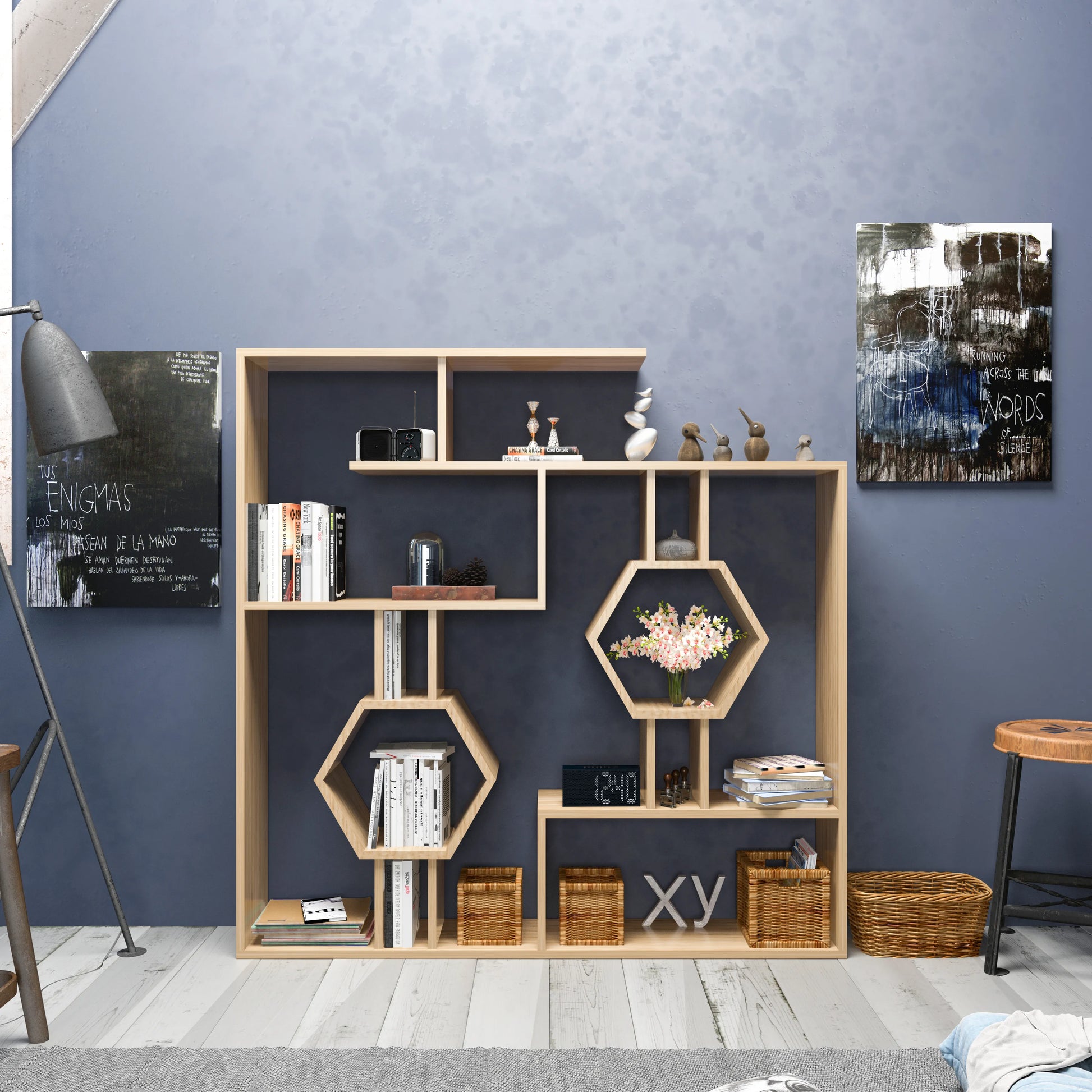 Two Hexagon Honeycomb Shelves in the Middle