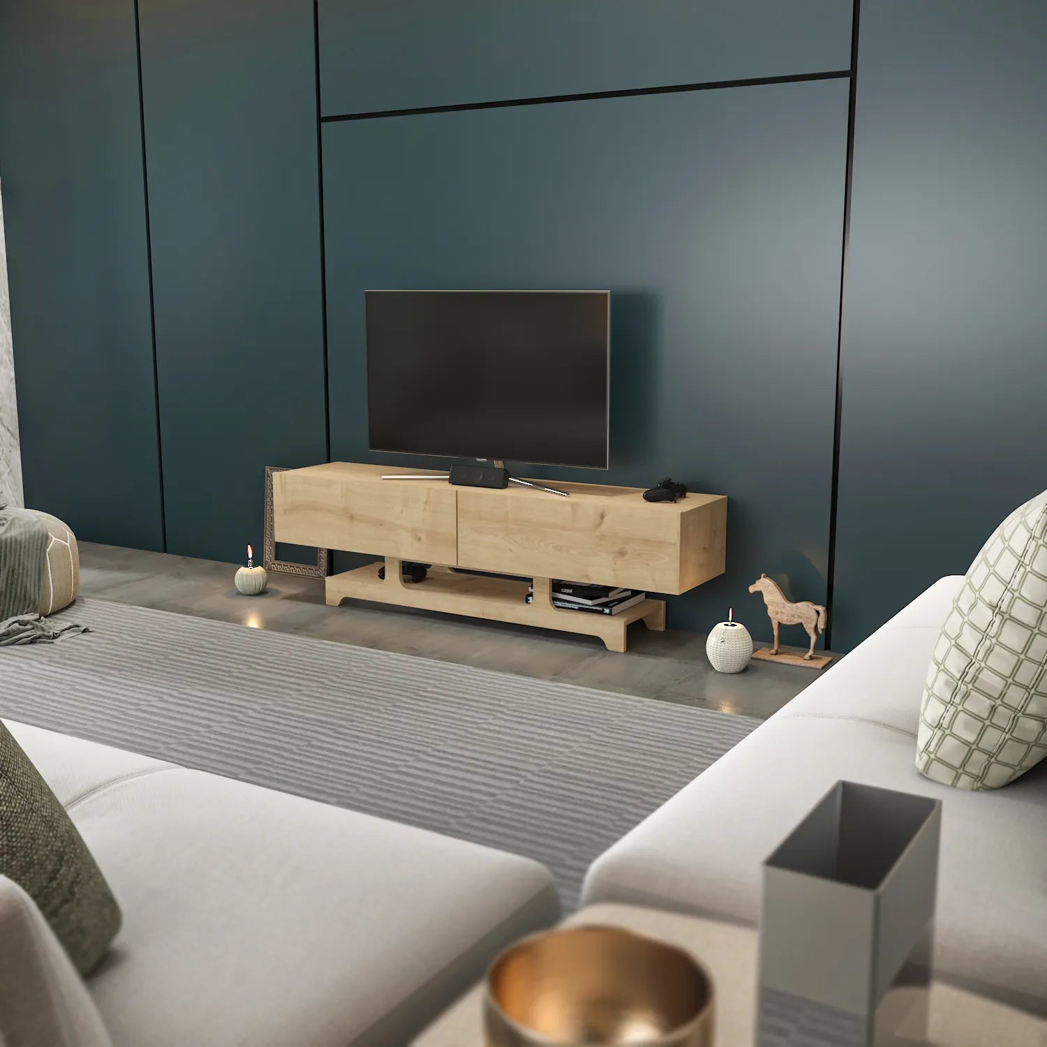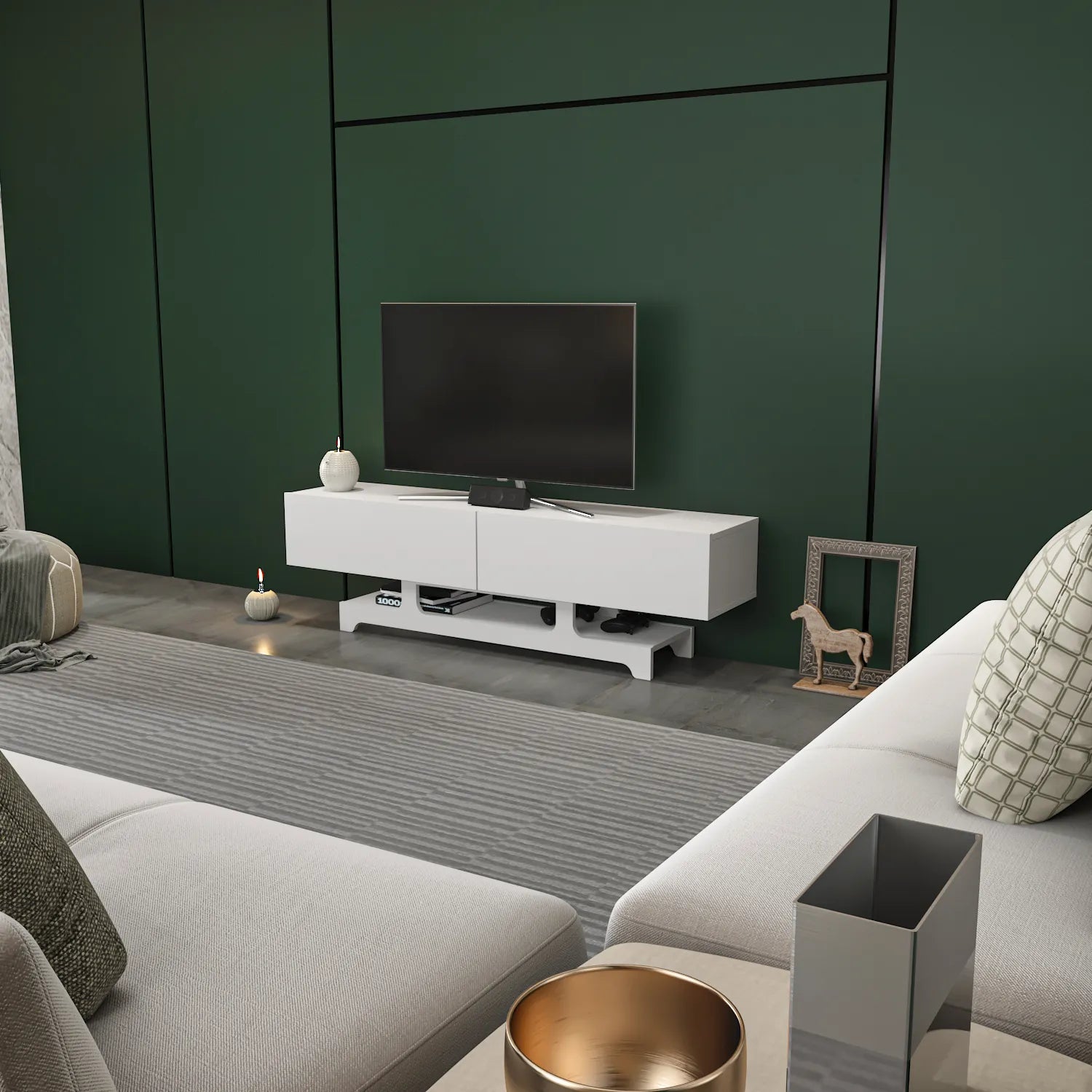 Crafted from 18mm thick high-quality melamine coated particle board, and featuring first-class PVC edge banding tape, the Tera TV stand ensures durability and longevity. It is manufactured using eco-friendly and health-friendly materials, providing peace of mind for your home environment. The product is shipped disassembled in its original packaging and can be easily assembled using basic household tools such as a power drill. Assembly instructions and installation hardware are included, and the parts are numbered for effortless and error-free installation.
