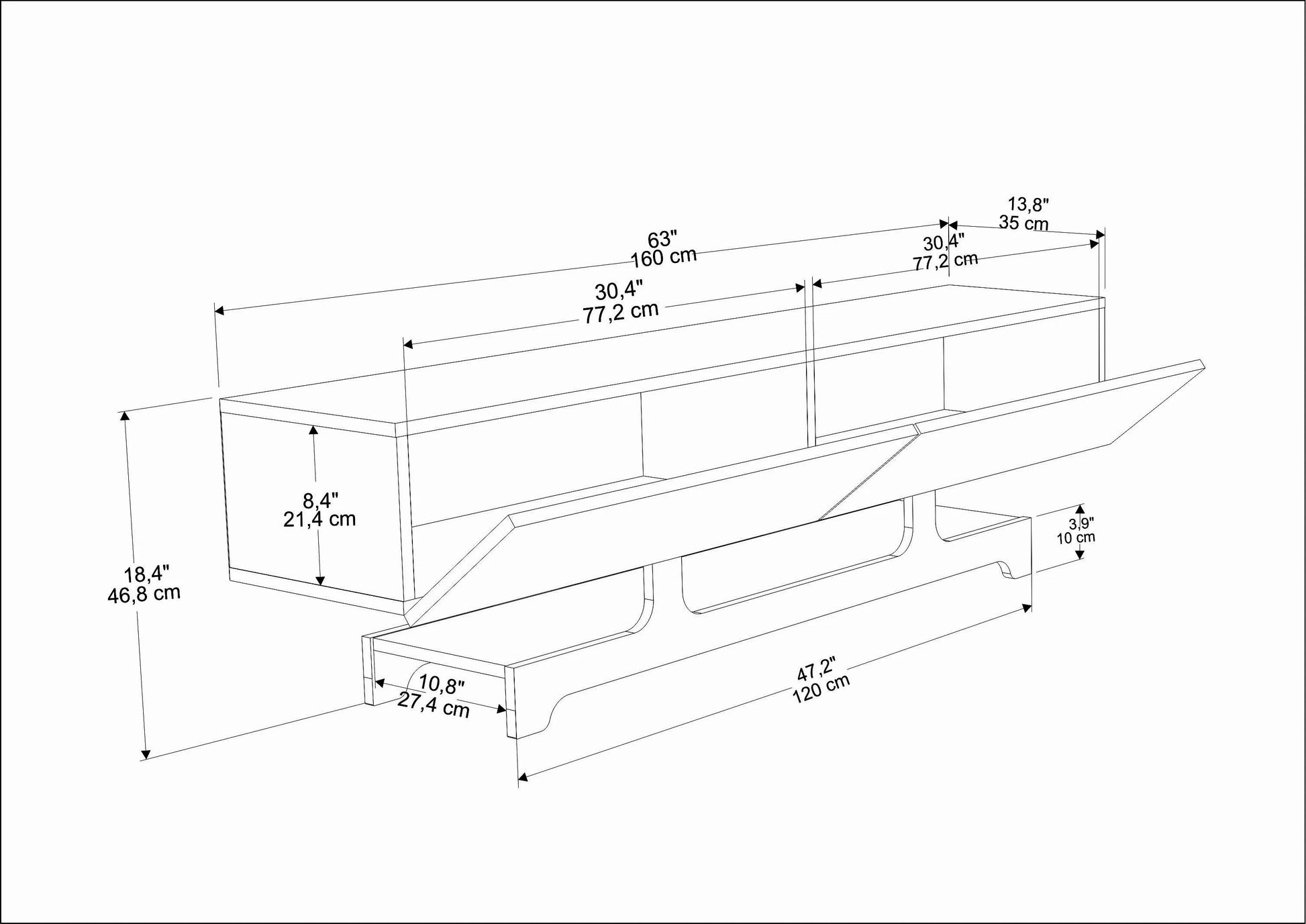 Enhance your room with the sleek and functional Tera 63" wide TV stand and media console. Designed to accommodate TVs up to 72", this standout piece combines modern aesthetics with ample storage space for your entertainment sets. With two spacious drop-down cabinets and a large shelf underneath, it offers convenient storage options for your media essentials.